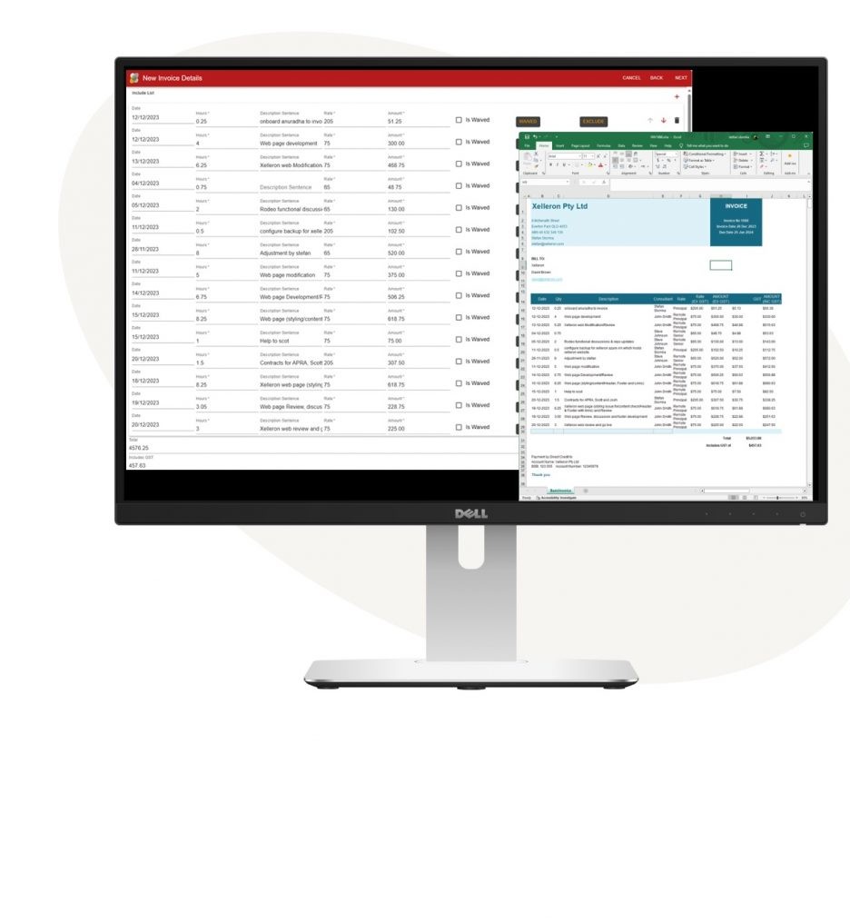 Invoices can then be automatically generated based on customizable MS Excel templates.